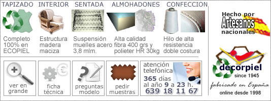 Sofás Chaise longue modelo Boston, con acabado de costura contrastada, realizado en la mejor vaca del mercado, modelos únicos para tu hogar, realizados totalmente en el mismo cuero que almohadones. Envío gratuito y hasta 5 años de garantía. |